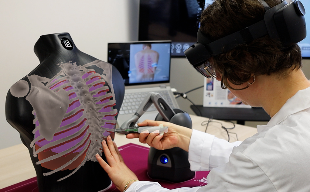 - Sim&Care | Chest: formazione sulla toracentesi, compresa l’ecografia polmonare per confermare la diagnosi, localizzare il versamento pleurico e identificarne i limiti. È attualmente in corso uno studio clinico presso l’ospedale universitario di Strasburgo per convalidare il valore formativo di questo simulatore.